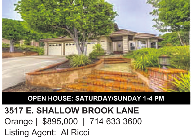 3517 E. SHALLOW BROOK LANE Orange | $895,000 | 714 633 3600 Listing Agent: Al Ricci