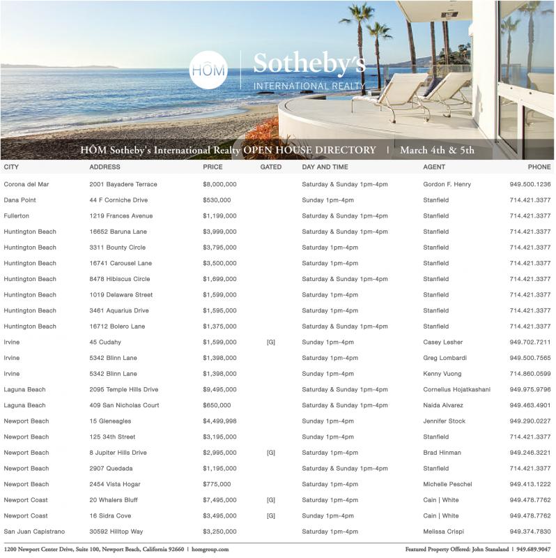 HÔM Sotheby's International Realty OPEN HOUSE DIRECTORY | March 4th & 5th