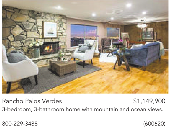 Rancho Palos Verdes $1,149,900 3-bedroom, 3-bathroom home with mountain and ocean views.