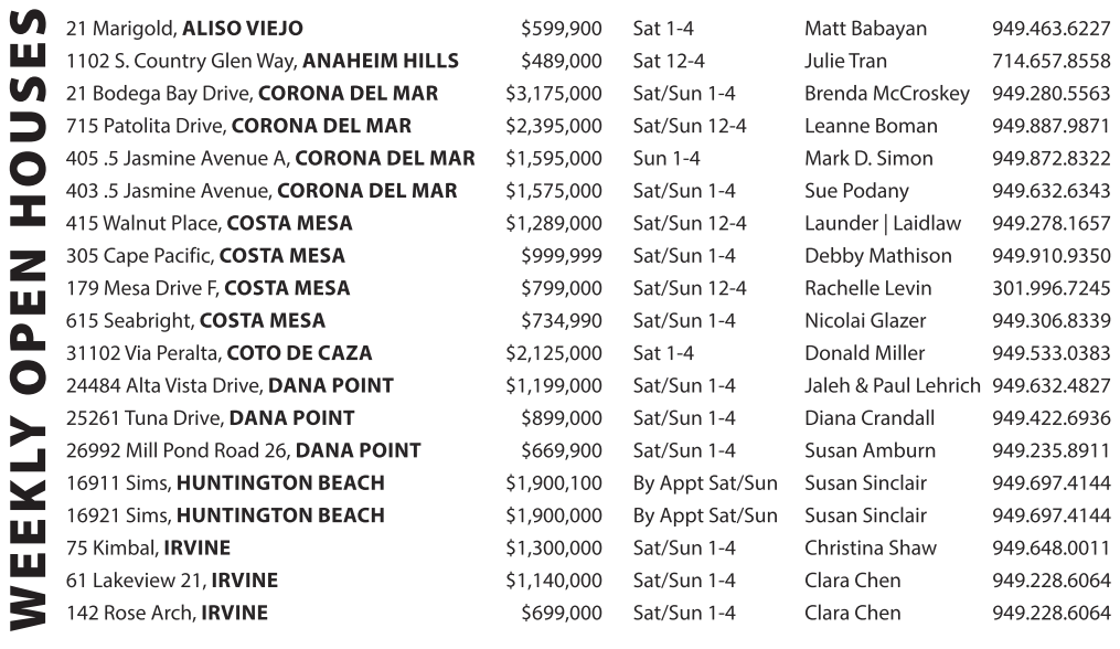 26992 Mill Pond Road 26, DANA POINT $669,900 Sat/Sun 1-4 Susan Amburn 949.235.8911