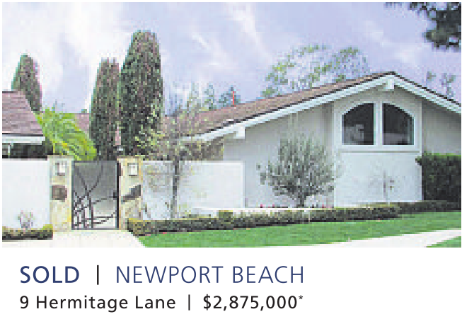 SOLD | NEWPORT BEACH 9 Hermitage Lane | $2,875,000 *