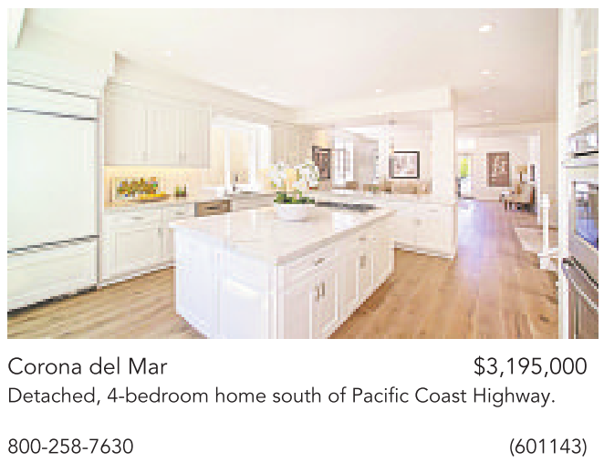 Corona del Mar $3,195,000 Detached, 4-bedroom home south of Pacific Coast Highway.