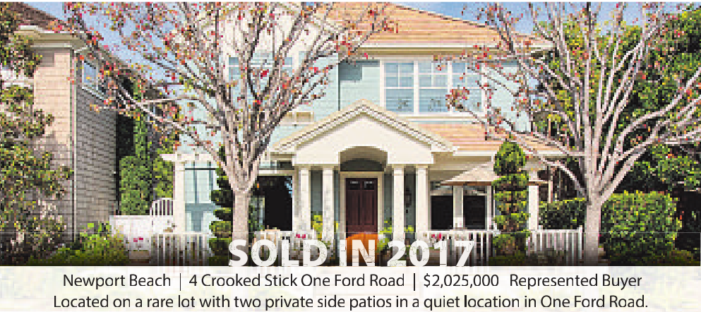 Newport Beach | 4 Crooked Stick One Ford Road | $2,025,000 Represented Buyer Located on a rare lot with two private side patios in a quiet location in One Ford Road.