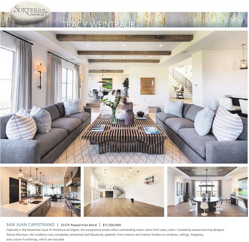 Featured in the November issue of Architectural Digest, this exceptional estate offers outstanding ocean views from every room. Created by award-winning designer Denise Morrison, the residence was completely reinvented and fabulously updated, from exterior and interior finishes to windows, ceilings, fireplaces, and custom furnishings, which are included.