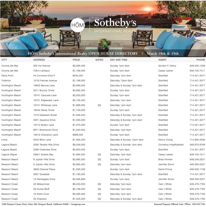 HÔM Sotheby's International Realty OPEN HOUSE DIRECTORY | March 18th & 19th