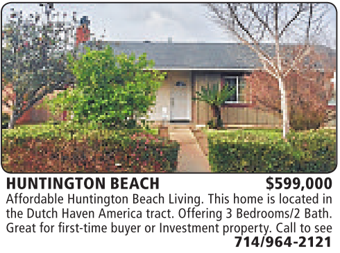 HUNTINGTON BEACH $599,000 Affordable Huntington Beach Living. This home is located in the Dutch Haven America tract. Offering 3Bedrooms/2 Bath. Great for first-time buyer orInvestment property. Call tosee 714/964-2121
