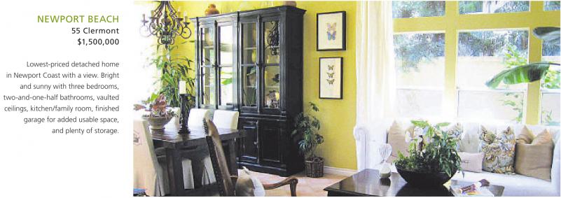 Lowest-priced detached home in Newport Coast with a view. Bright and sunny with three bedrooms, two-and-one-half bathrooms, vaulted ceilings, kitchen/family room, finished garage for added usable space, and plenty of storage.