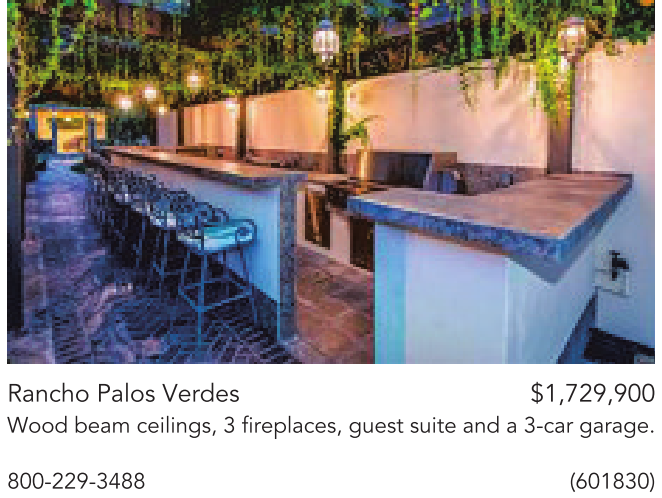Rancho Palos Verdes $1,729,900 Wood beam ceilings, 3 fireplaces, guest suite and a 3-car garage.