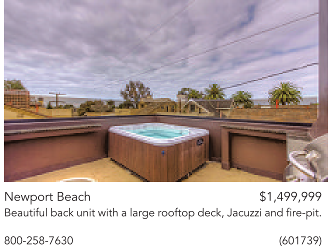 Newport Beach $1,499,999 Beautiful back unit with alarge rooftop deck, Jacuzzi and fire-pit.