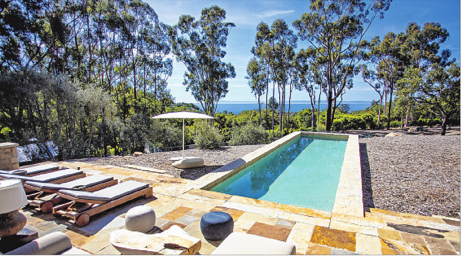 Asunken tennis court, a badminton court and an ocean-view lookout complete the setting.