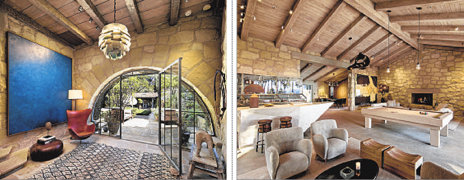The 10,500 square feet of living space includes a media room, a grand living room, a formal dining room, six bedrooms and six bathrooms. A lofted office/creative space is accessed by a secret door in the chef’s kitchen. An art studio used by De Rossi sits below the lofted space and has a kitchenette.
