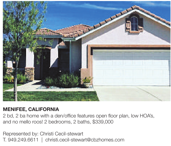Represented by: Christi Cecil-stewart T. 949.249.6611 | christi.cecil-stewart@cbzhomes.com