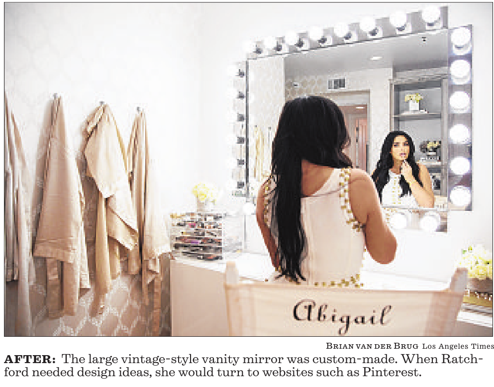 AFTER: The large vintage-style vanity mirror was custom-made. When Ratchford needed design ideas, she would turn to websites such as Pinterest.