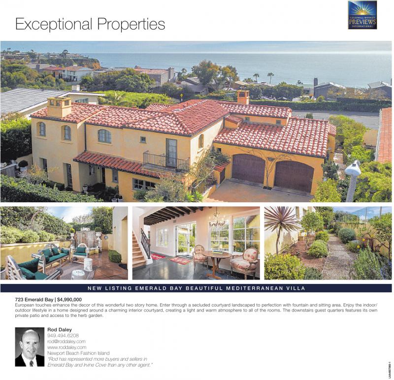 Rod Daley 949.494.6208 rod@roddaley.com www.roddaley.com Newport Beach Fashion Island “Rod has represented more buyers and sellers in Emerald Bay and Irvine Cove than any other agent.”