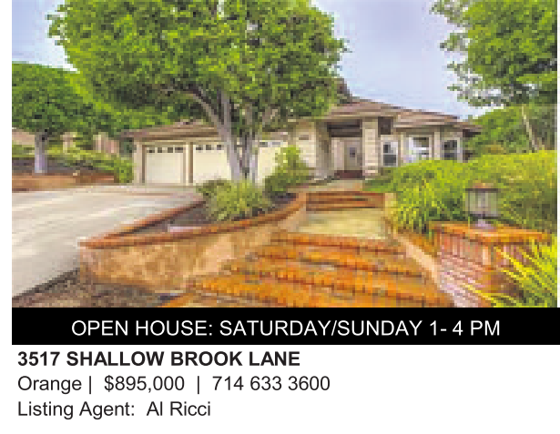 OPEN HOUSE: SATURDAY/SUNDAY 1- 4 PM 3517 SHALLOW BROOK LANE Orange | $895,000 | 714 633 3600 Listing Agent: Al Ricci