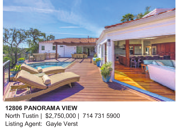 12806 PANORAMA VIEW North Tustin | $2,750,000 | 714 731 5900 Listing Agent: Gayle Verst
