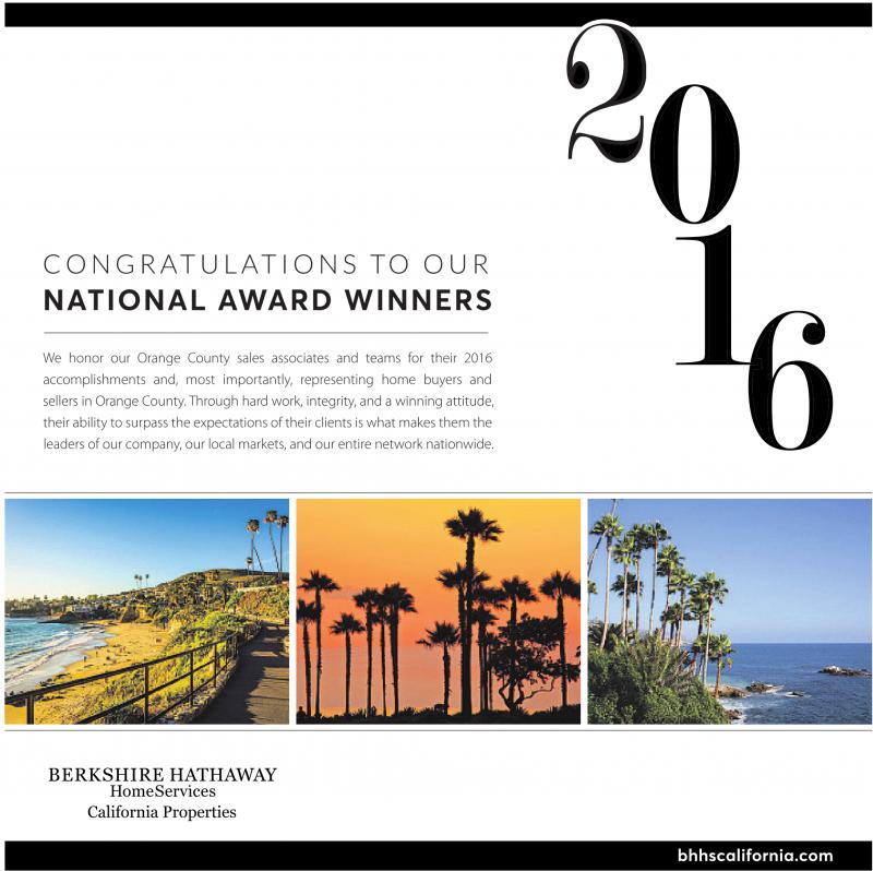 We honor our Orange County sales associates and teams for their 2016 accomplishments and, most importantly, representing home buyers and sellers in Orange County. Through hard work, integrity, and a winning attitude, their ability to surpass the expectations of their clients is what makes them the leaders of our company, our local markets, and our entire network nationwide.