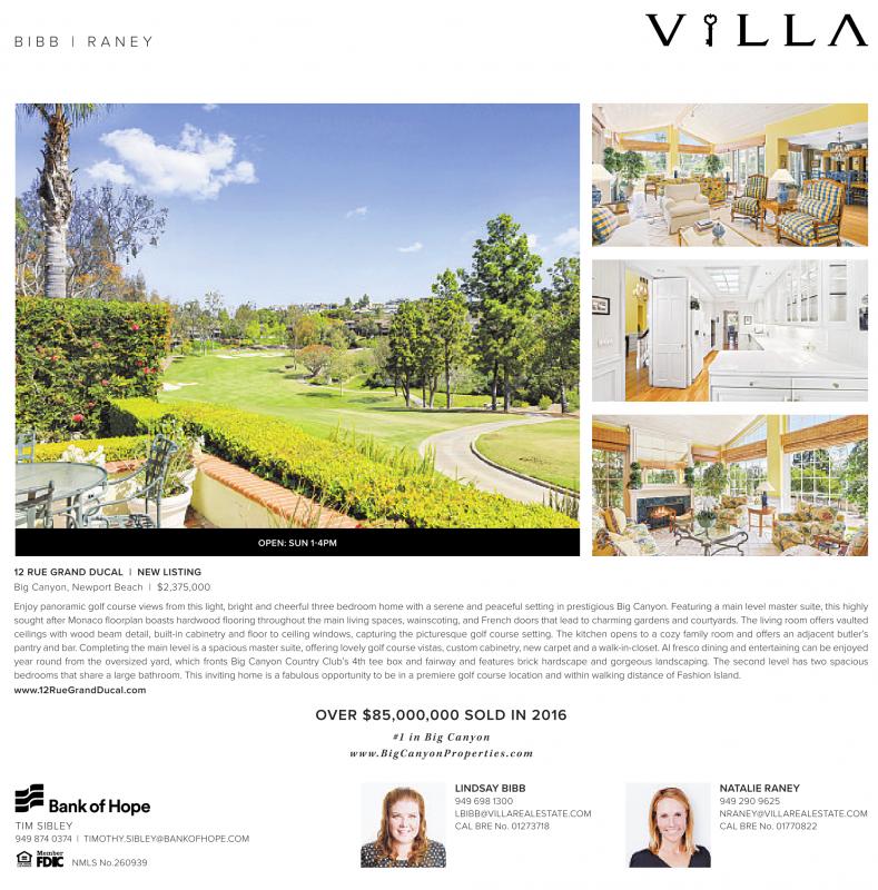LINDSAY BIBB 949 698 1300 LBIBB@VILLAREALESTATE.COM CAL BRE No. 01273718
