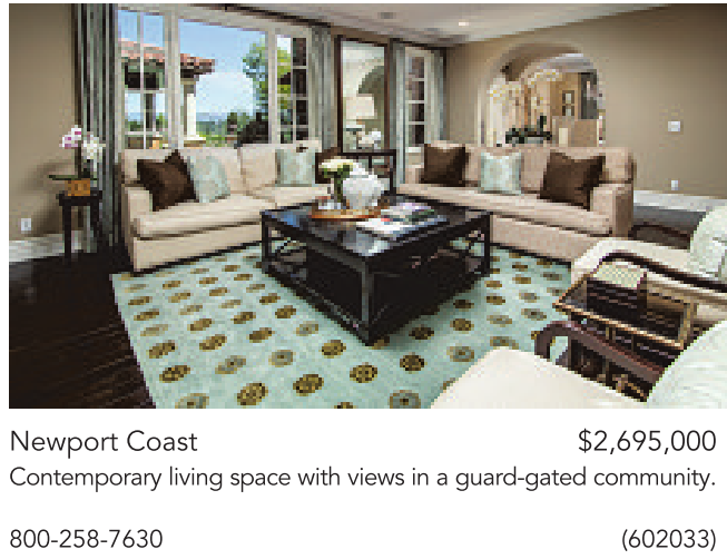 Newport Coast $2,695,000 Contemporary living space with views in aguard-gated community.