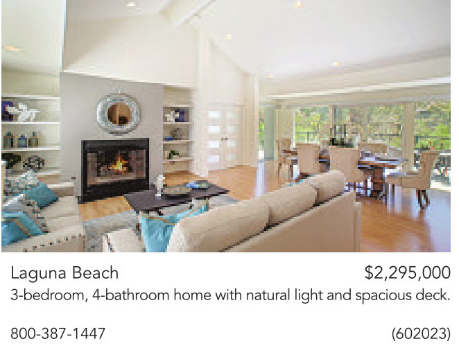 Laguna Beach $2,295,000 3-bedroom, 4-bathroom home with natural light and spacious deck.