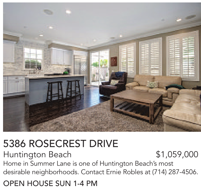 Home in Summer Lane is one of Huntington Beach’s most desirable neighborhoods. Contact Ernie Robles at (714) 287-4506.