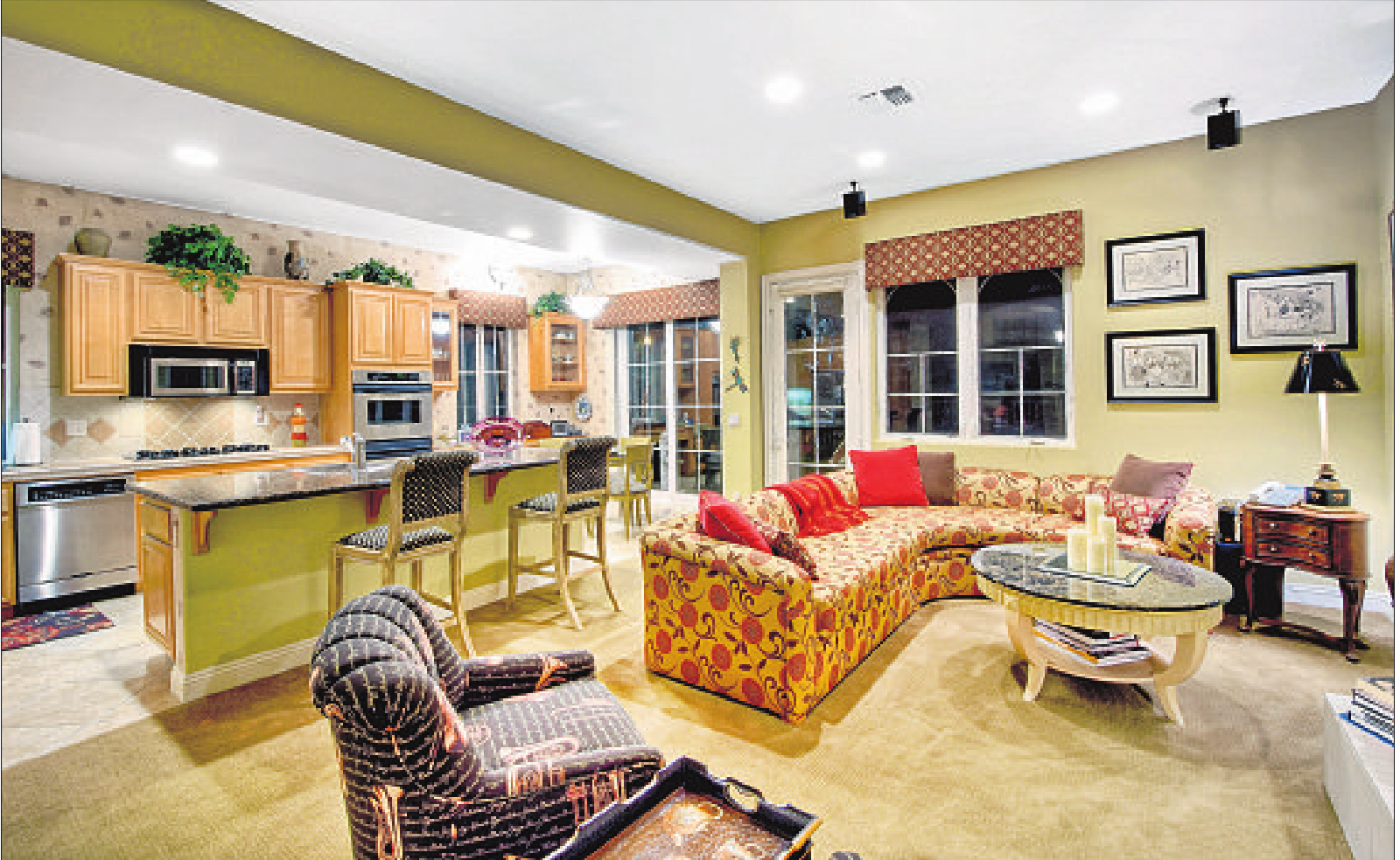 One of 12 homes on a private and gated street, the multilevel home has 3,237 square feet of living space that includes a great room, a dining room and a center-island kitchen that opens to the family room. The library, nicknamed the President’s Room, displays photos of Henderson with nearly every U.S. president going back to Dwight D. Eisenhower.