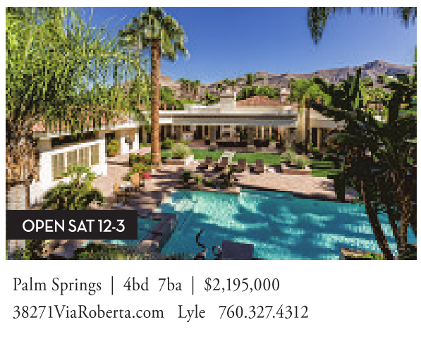 Palm Springs | 4bd 7ba | $2,195,000 38271ViaRoberta.com Lyle 760.327.4312