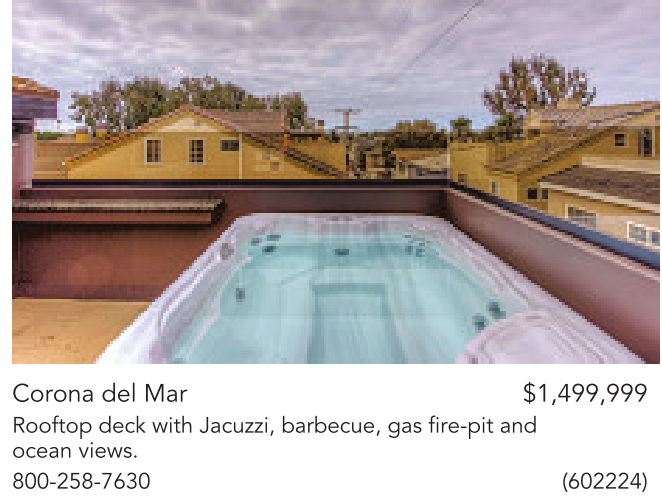 Corona del Mar $1,499,999 Rooftop deck with Jacuzzi, barbecue, gas fire-pit and ocean views.