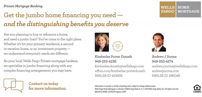 As your local Wells Fargo Private mortgage bankers, we specialize in jumbo financing along with any complex financing arrangements you may have.