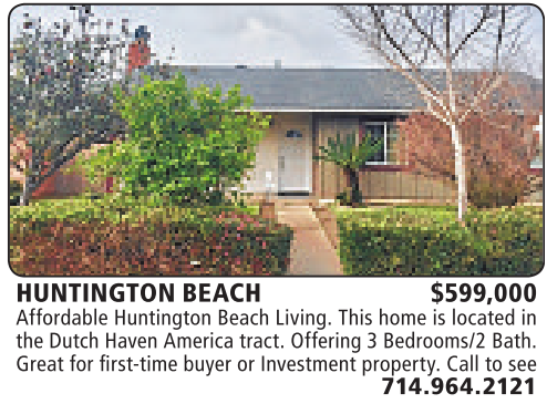 HUNTINGTON BEACH $599,000 Affordable Huntington Beach Living. This home is located in the Dutch Haven America tract. Offering 3Bedrooms/2 Bath. Great for first-time buyer orInvestment property. Call tosee 714.964.2121