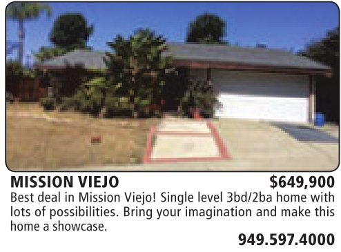 MISSION VIEJO $649,900 Best deal in Mission Viejo! Single level 3bd/2ba home with lots of possibilities. Bring your imagination and make this home ashowcase.
