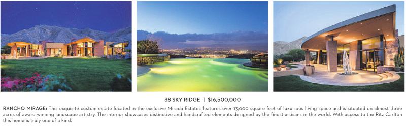 RANCHO MIRAGE: This exquisite custom estate located in the exclusive Mirada Estates features over 13,000 square feet of luxurious living space and is situated on almost three acres of award winning landscape artistry. The interior showcases distinctive and handcrafted elements designed by the finest artisans in the world. With access to the Ritz Carlton this home is truly one of a kind.