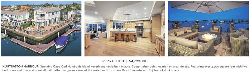 HUNTINGTON HARBOUR: Stunning Cape Cod Humboldt Island waterfront newly built in 2014. Sought after point location on a cul-de-sac. Featuring over 4,500 square feet with five bedrooms and four and one-half half baths. Gorgeous views of the water and Christiana Bay. Complete with 125 feet of dock space.