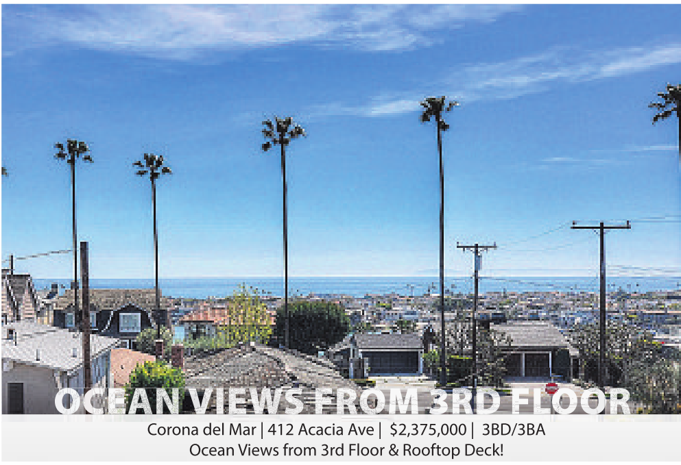 Corona del Mar | 412Acacia Ave | $2,375,000 | 3BD/3BA Ocean Viewsfrom3rd Floor&RooftopDeck!