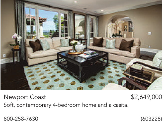 Newport Coast $2,649,000 Soft, contemporary 4-bedroom home and a casita.