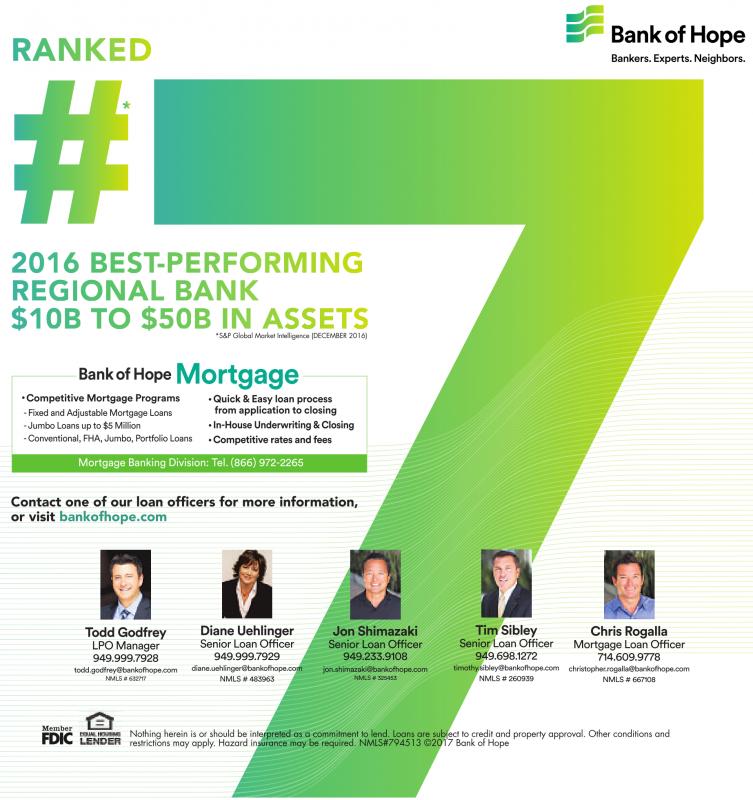 Nothing herein is or should be interpreted as a commitment to lend. Loans are subject to credit and property approval. Other conditions and restrictions may apply. Hazard insurance may be required. NMLS#794513 ©2017 Bank of Hope