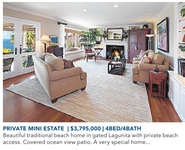 PRIVATE MINI ESTATE | $3,795,000 | 4BED/4BATH Beautiful traditional beachhomeingatedLagunitawithprivate beach access. Covered ocean view patio. Avery special home...