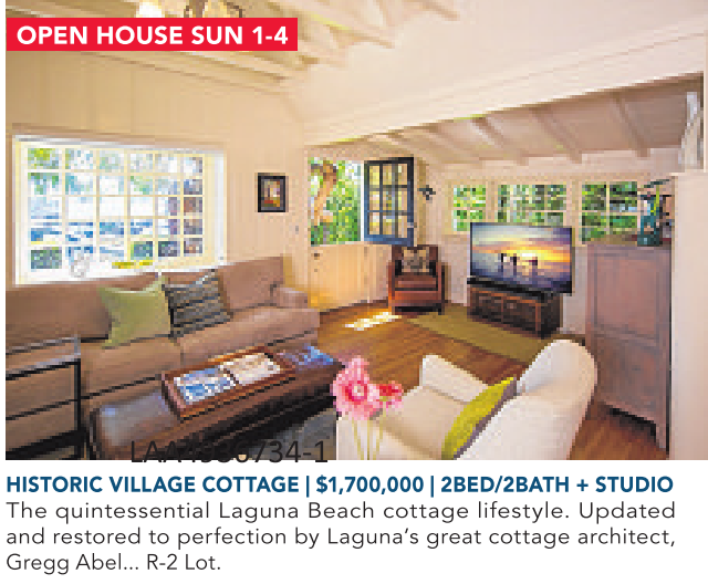 HISTORIC VILLAGE COTTAGE |$1,700,000 |2BED/2BATH +STUDIO The quintessential Laguna Beach cottage lifestyle. Updated and restored to perfection by Laguna’s great cottage architect, Gregg Abel... R-2 Lot.