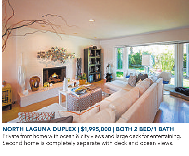 NORTH LAGUNA DUPLEX | $1,995,000 | BOTH 2 BED/1 BATH Private fronthomewithocean &cityviewsand largedeckfor entertaining. Second home is completely separate with deck and ocean views.