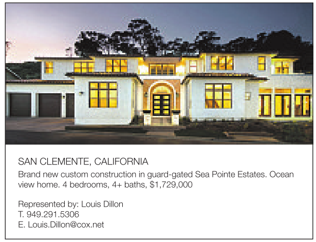 SAN CLEMENTE, CALIFORNIA Brand new custom construction in guard-gated Sea Pointe Estates. Ocean view home. 4bedrooms, 4+ baths, $1,729,000