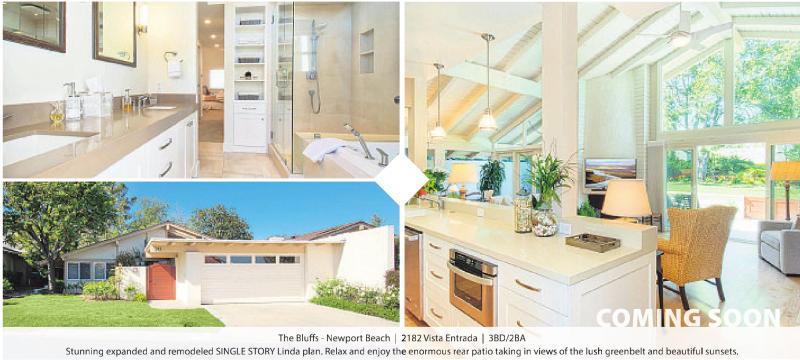 The Bluffs - Newport Beach | 2182 Vista Entrada | 3BD/2BA Stunning expanded and remodeled SINGLE STORY Linda plan. Relax and enjoy the enormous rear patio taking in views of the lush greenbelt and beautiful sunsets.