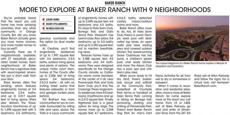 MORE TO EXPLORE AT BAKER RANCH WITH 9 NEIGHBORHOODS