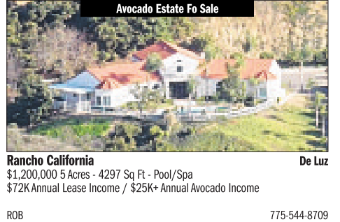Rancho California $1,200,000 5Acres -4297 Sq Ft -Pool/Spa $72K AnnualLease Income /$25K+ Annual Avocado Income