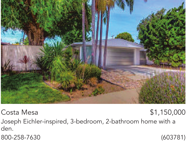 Costa Mesa $1,150,000 Joseph Eichler-inspired, 3-bedroom, 2-bathroom home with a den.