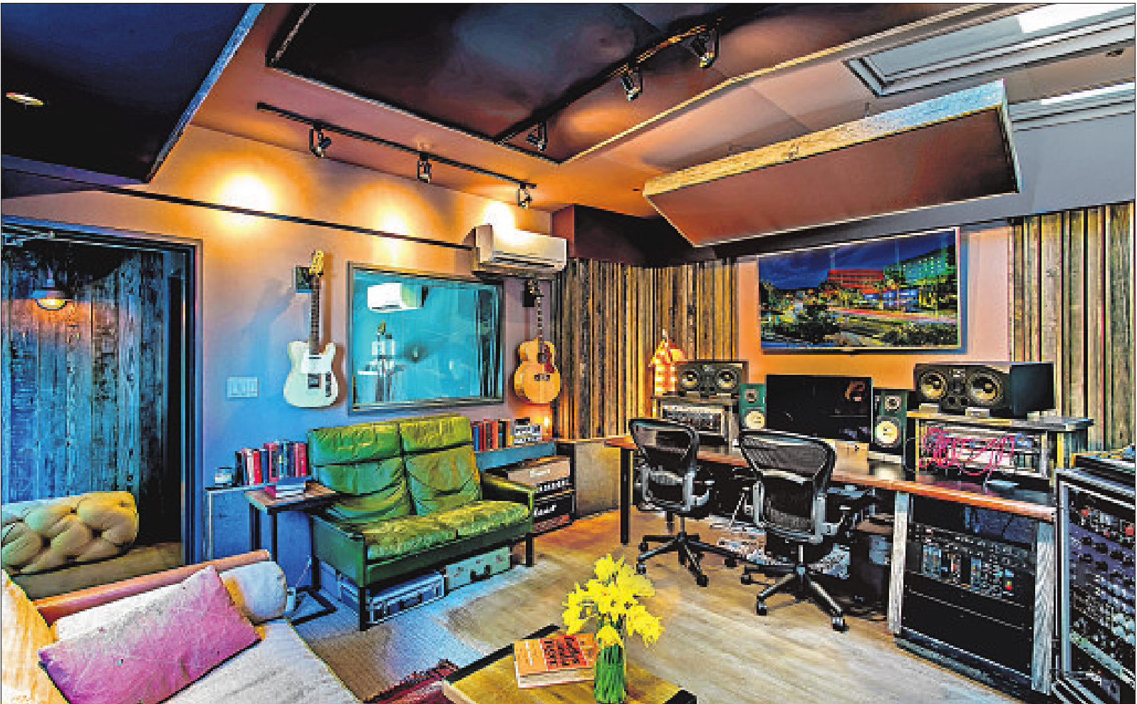 The nearly 1,800 square feet of guitar-decorated living space also includes an open living room/ dining area, two bedrooms and four bathrooms.