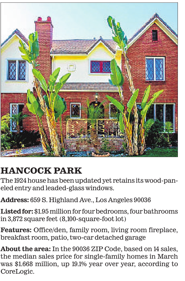 HANCOCK PARK The1924 house has been updated yet retains its wood-paneled entry and leaded-glass windows.