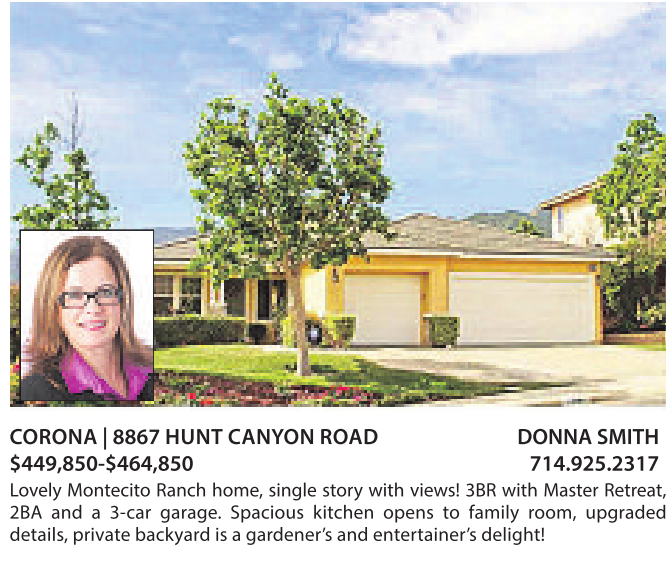 $449,850-$464,850 714.925.2317 Lovely Montecito Ranch home, single story with views! 3BR with Master Retreat, 2BA and a 3-car garage. Spacious kitchen opens to family room, upgraded