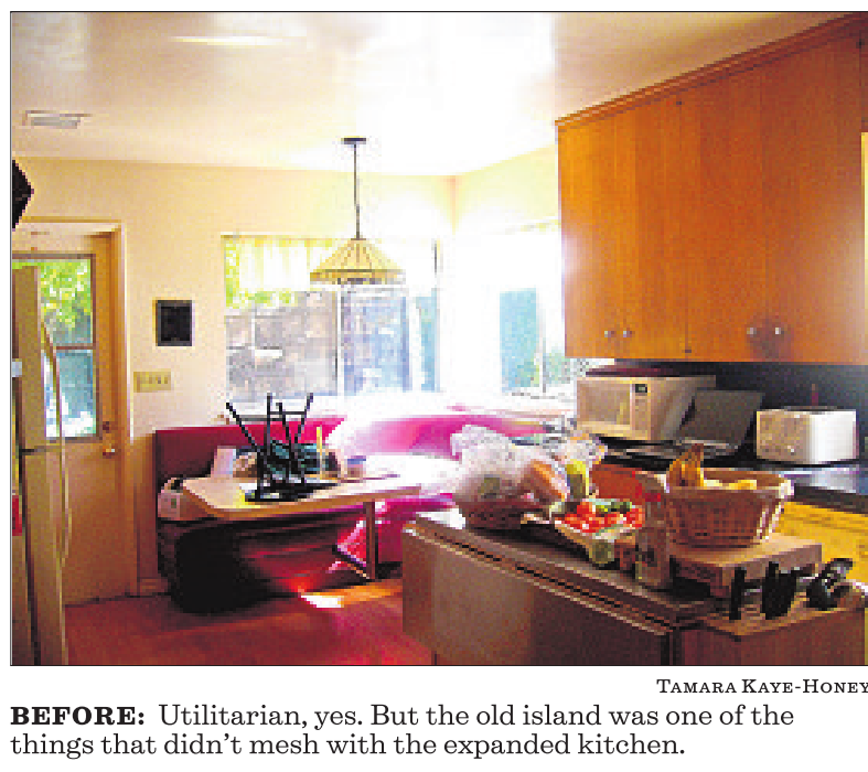 BEFORE: Utilitarian, yes. But the old island was one of the things that didn’t mesh with the expanded kitchen.