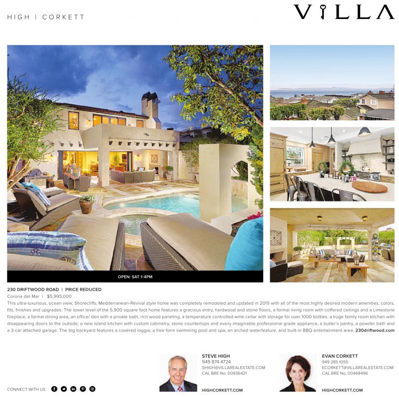EVAN CORKETT 949 285 1055 ECORKETT@VILLAREALESTATE.COM CAL BRE No. 00468496