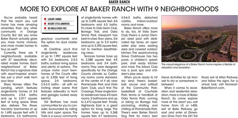 MORE TO EXPLORE AT BAKER RANCH WITH 9 NEIGHBORHOODS